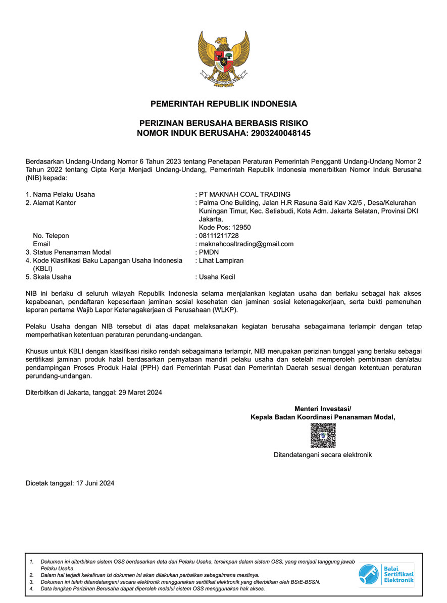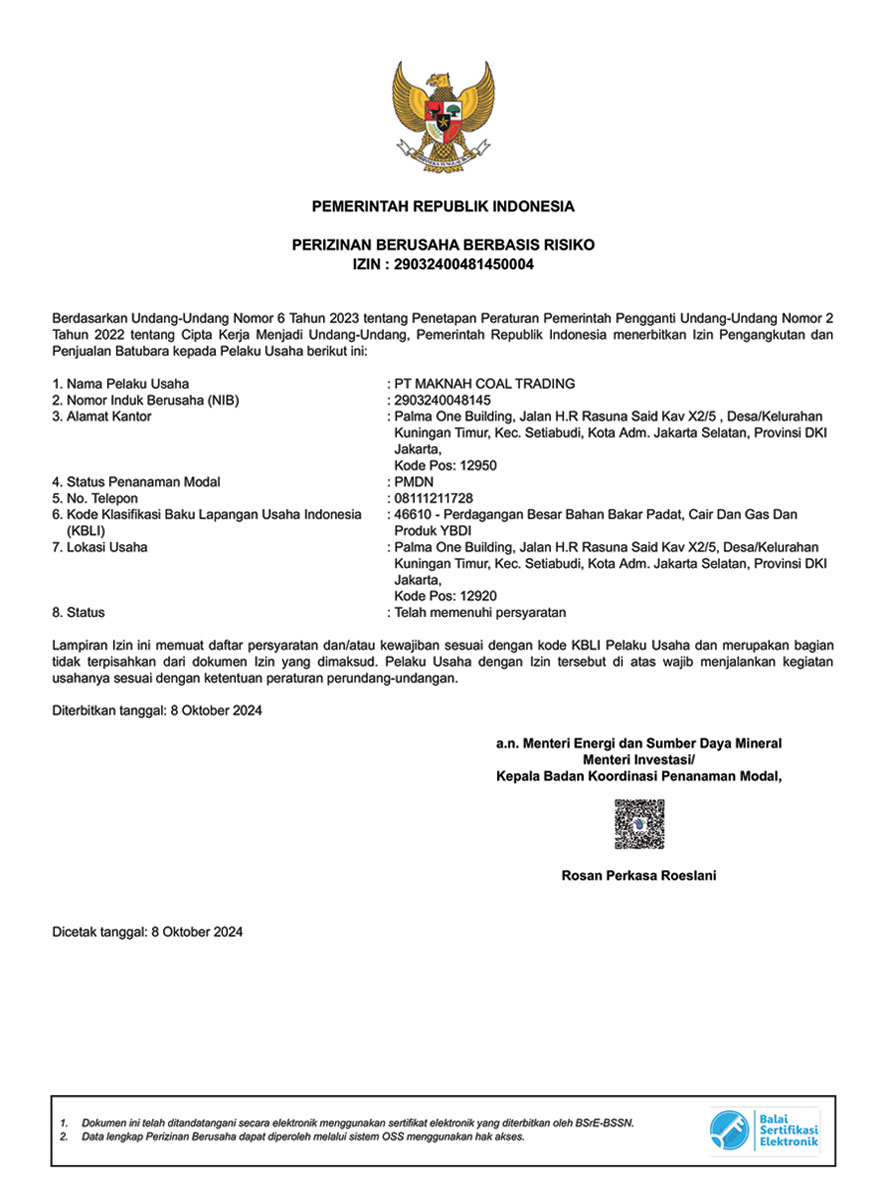 Our operations are fully compliant with all applicable local and international regulations. We hold all necessary licenses and permits to conduct business in the coal industry, ensuring that our activities meet the highest legal and safety standards.