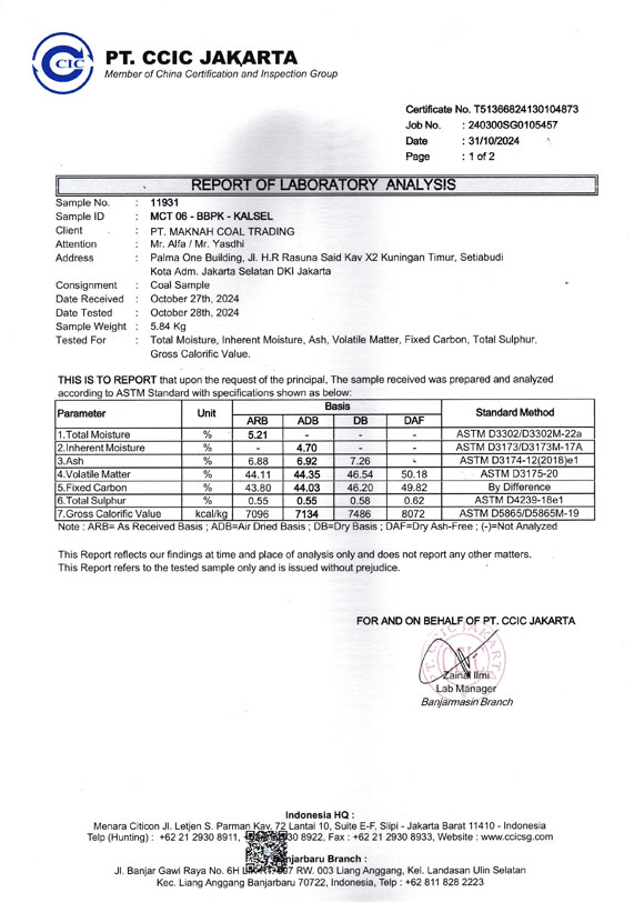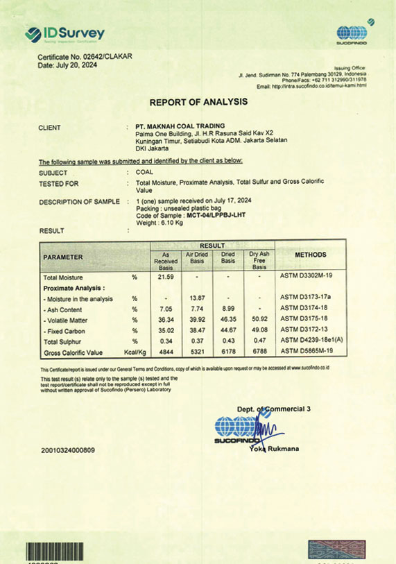 Here, you’ll find detailed, verifiable assessments of our coal quality, ensuring transparency and trust in every transaction. Each RoA provides in-depth data on calorific value, ash content, sulfur levels, and more, reflecting our commitment to delivering consistent, high-quality coal that meets industry standards and client expectations.