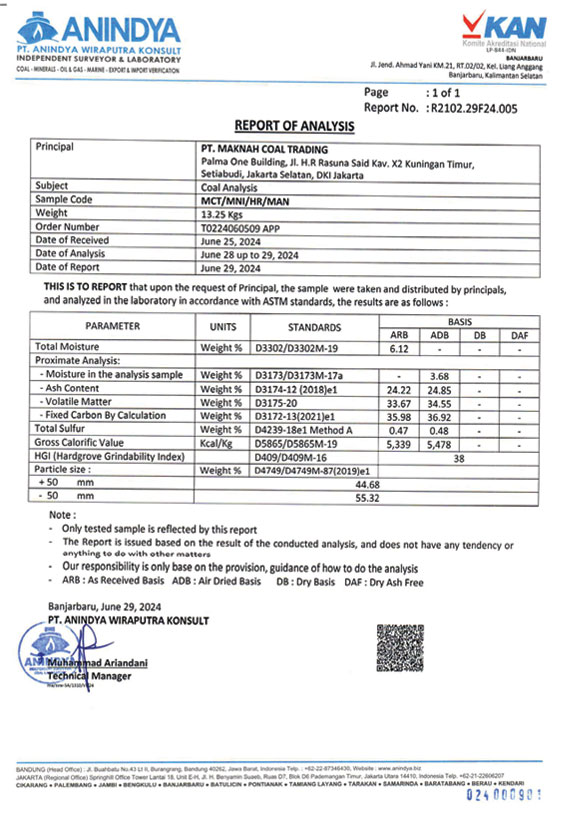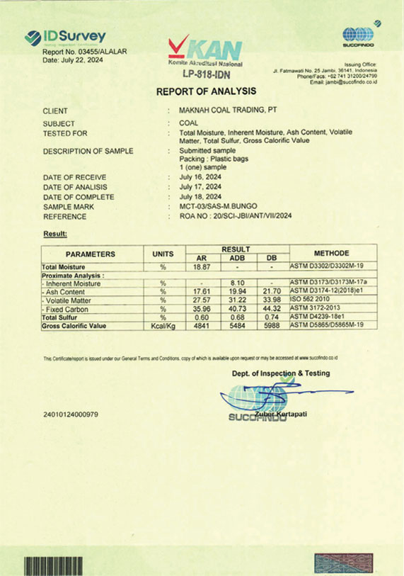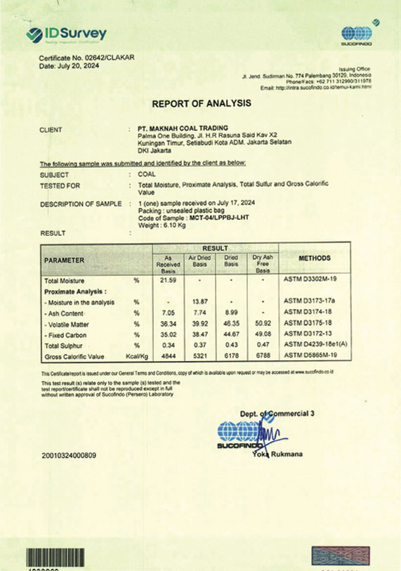 Here, you’ll find detailed, verifiable assessments of our coal quality, ensuring transparency and trust in every transaction. Each RoA provides in-depth data on calorific value, ash content, sulfur levels, and more, reflecting our commitment to delivering consistent, high-quality coal that meets industry standards and client expectations.
